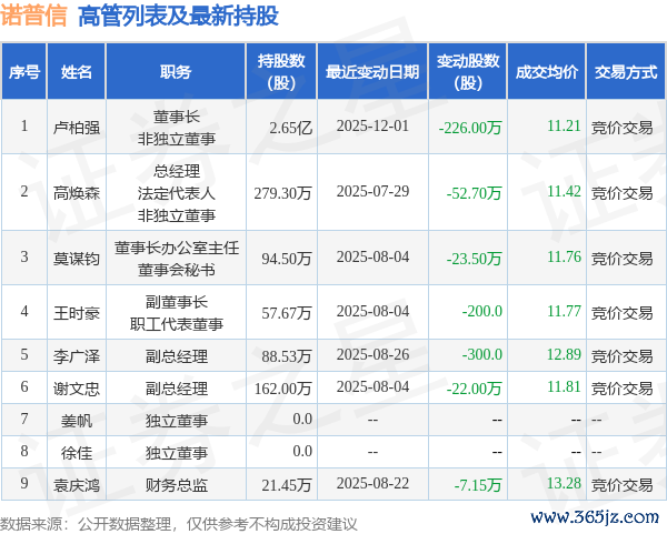 诺普信近半年内的董监高及中枢时刻东说念主员增减抓细目如下: